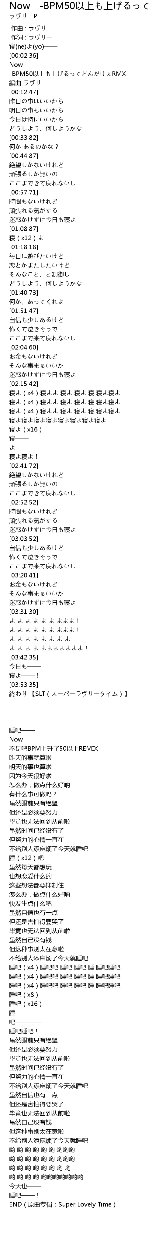 Now Bpm50以上も上げるってどんだけぇrmx Now Bpm50 Yi Shang Shang Rmx Lyrics Follow Lyrics